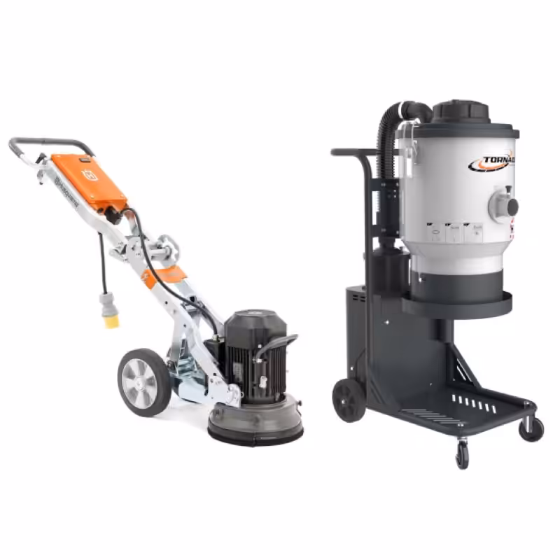 Husqvarna PG280 grinder & Tornado Vacuum TIV 1000 10amp or 15amp single disc floor efficiently stops airborne dust in your work environment. It efficiently removes adhesives, paint, epoxies etc, and is ideal for floor preparation on small to medium concrete areas up to 100sqm